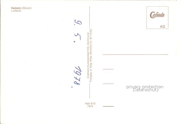 72312520 Hameln Weser Fliegeraufnahme postalisch nicht gelaufen Erhaltung siehe scans KatCode: 11110003252006
