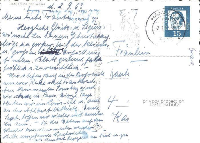 72293346 alte Postkarte Hameln Weser Fliegeraufnahme postalisch gelaufen Erhaltung siehe scans KatCode: 11110003252006