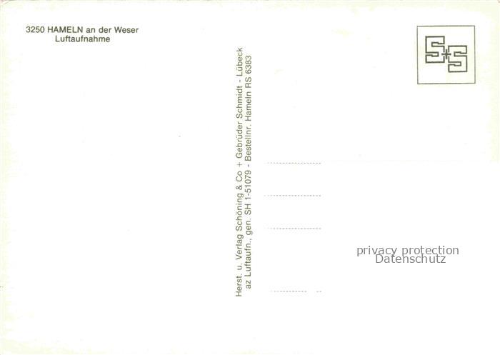 74022629 HAMELN Weser Fliegeraufnahme postalisch nicht gelaufen Erhaltung siehe scans [FriedD77] KatCode: 11110003252006