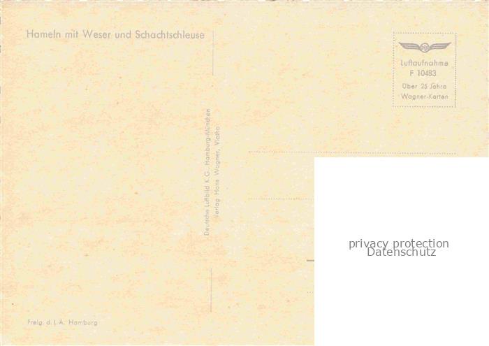 74093828 HAMELN Weser Fliegeraufnahme mit Schachtschleuse postalisch nicht gelaufen Erhaltung siehe scans [WerneD78] KatCode: 11110003252006