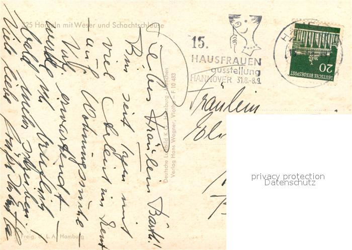 73209540 alte Postkarte Hameln Weser Fliegeraufnahme mit Schachtschleuse postalisch gelaufen Erhaltung siehe scans [WerneD78] KatCode: 11110003252006