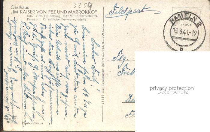 71578127 alte Postkarte Hameln Weser Gasthaus Im Kaiser von Fez Marrokko postalisch gelaufen Erhaltung siehe scans KatCode: 11110003252006