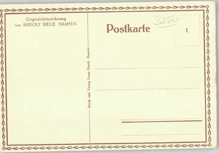 40260696 Hameln Weser Hameln Künstlerkarte Rudolf Riege Rathaus Münsterkirche Bäckerscharren Hochzei KatCode 11110003252006