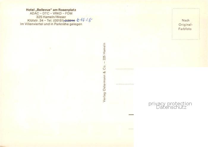 73788444 Hameln Weser Hotel Bellevue am Rosenplatz postalisch nicht gelaufen Erhaltung siehe scans [WerneD78] KatCode: 11110003252006