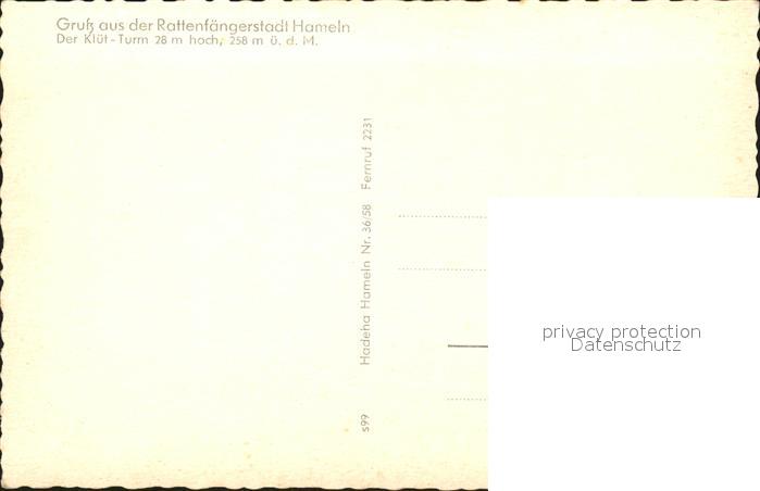 71925111 Hameln Weser Kluet Turm postalisch nicht gelaufen Erhaltung siehe scans KatCode: 11110003252006