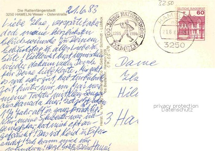 72887427 alte Postkarte Hameln Weser Markt postalisch gelaufen Erhaltung siehe scans [WerneD78] KatCode: 11110003252006