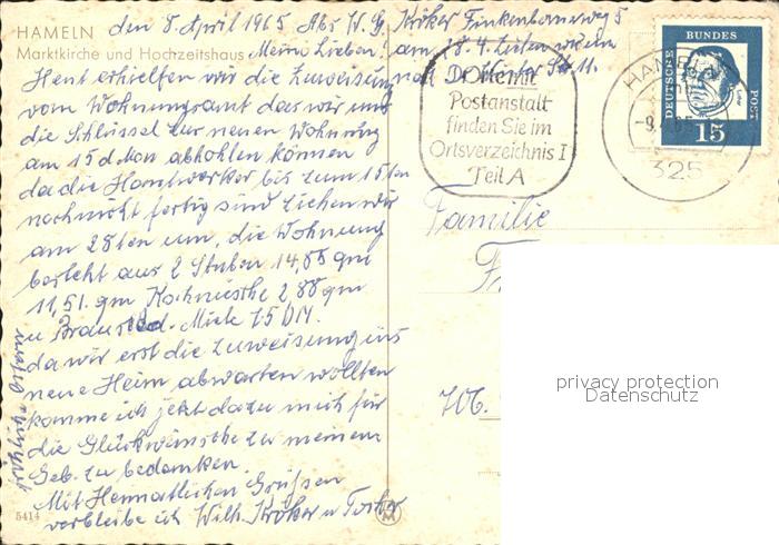 72374545 alte Postkarte Hameln Weser Marktkirche Hochzeitshaus postalisch gelaufen Erhaltung siehe scans KatCode: 11110003252006