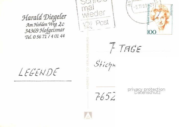 72725446 alte Postkarte Hameln Weser Muensterkirche Osterstrasse Marktkirche Pferdemarkt Weserberglandhalle Park postalisch gelaufen Erhaltung siehe scans [FriedD77] KatCode: 11110003252006