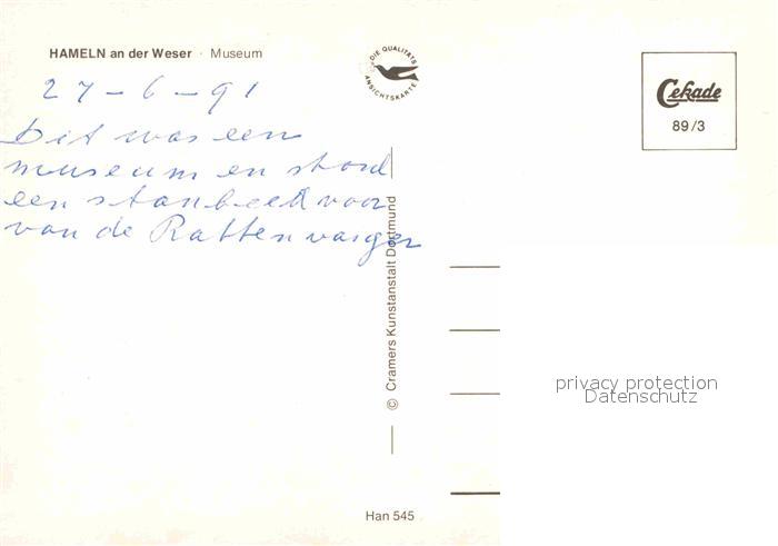 72787356 Hameln Weser Museum postalisch nicht gelaufen Erhaltung siehe scans [WerneD78] KatCode: 11110003252006