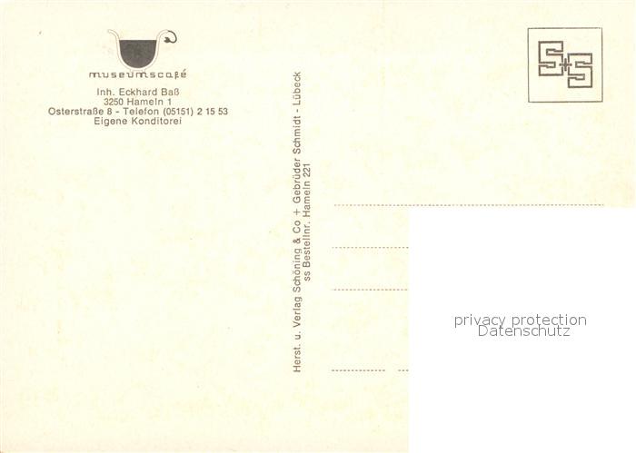 73016349 Hameln Weser Museumcafe postalisch nicht gelaufen Erhaltung siehe scans [NatalD47] KatCode: 11110003252006