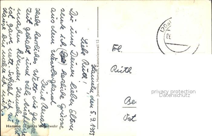 72275090 alte Postkarte Hameln Weser Oberes Weserwehr postalisch gelaufen Erhaltung siehe scans KatCode: 11110003252006
