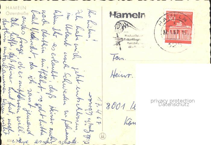 72229313 alte Postkarte Hameln Weser Osterstrasse postalisch gelaufen Erhaltung siehe scans KatCode: 11110003252006