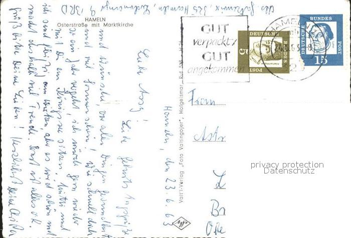 72077277 alte Postkarte Hameln Weser Osterstrasse Marktkirche postalisch gelaufen Erhaltung siehe scans KatCode: 11110003252006