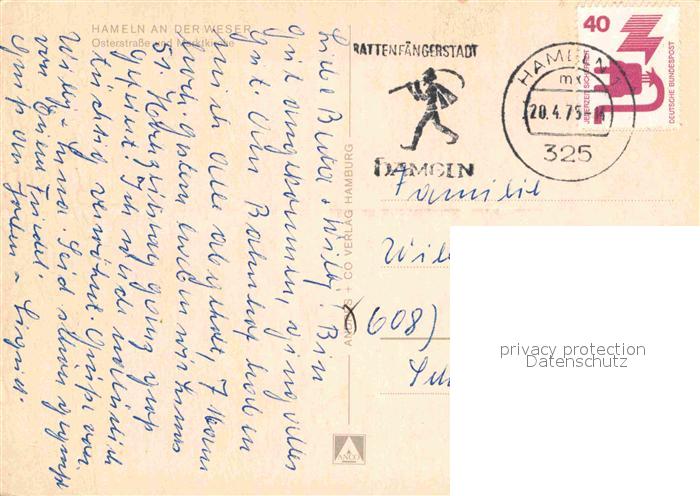 72628441 alte Postkarte Hameln Weser Osterstrasse Marktkirche postalisch gelaufen Erhaltung siehe scans [NatalD47] KatCode: 11110003252006