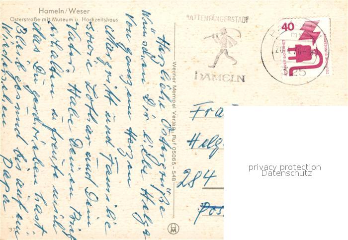 72990586 alte Postkarte Hameln Weser Osterstrasse mit Museum und Hochzeitshaus postalisch gelaufen Erhaltung siehe scans [WerneD78] KatCode: 11110003252006
