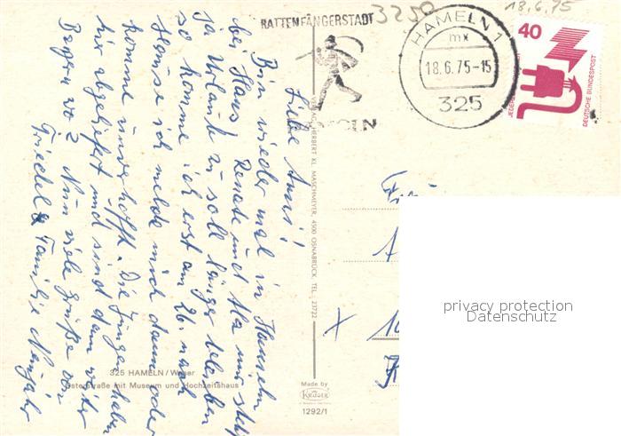 73073582 alte Postkarte Hameln Weser Osterstrasse mit Museum und Hochzeitshaus postalisch gelaufen Erhaltung siehe scans [WerneD78] KatCode: 11110003252006
