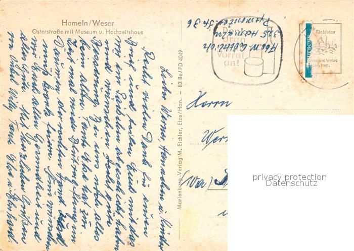 72855775 alte Postkarte Hameln Weser Osterstrasse Museum Hochzeitshaus postalisch gelaufen Erhaltung siehe scans [AndreD76] KatCode: 11110003252006