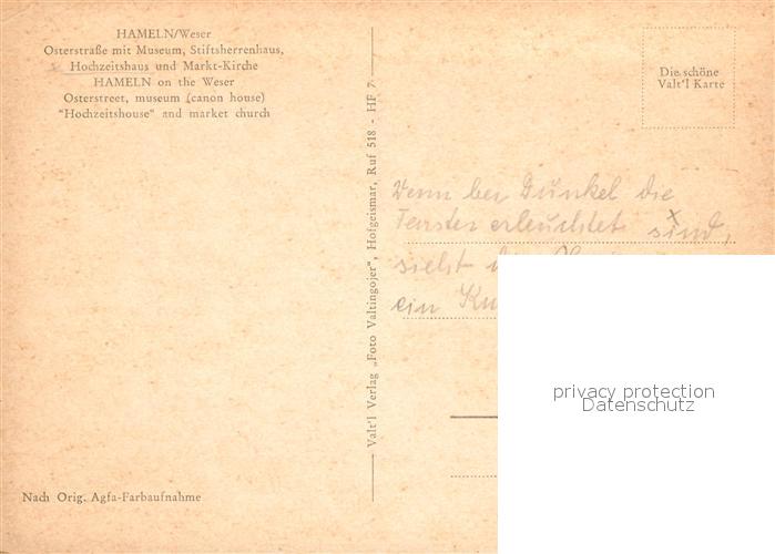73040772 Hameln Weser Osterstrasse Museum Stiftsherrenhaus Markt-Kirche postalisch nicht gelaufen Erhaltung siehe scans [NatalD47] KatCode: 11110003252006