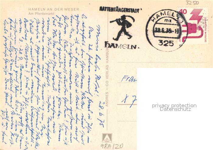 72887426 alte Postkarte Hameln Weser Pferdemarkt postalisch gelaufen Erhaltung siehe scans [WerneD78] KatCode: 11110003252006