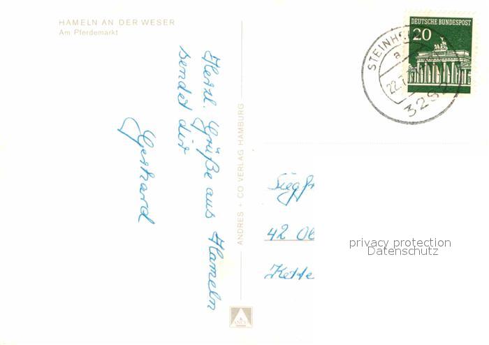 72837465 alte Postkarte Hameln Weser Pferdemarkt postalisch gelaufen Erhaltung siehe scans [PaolaD17] KatCode: 11110003252006