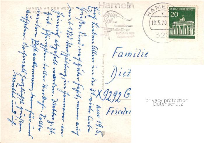 72970271 alte Postkarte Hameln Weser Pferdemarkt Platz Innenstadt Fachwerkhaeuser Fahnen postalisch gelaufen Erhaltung siehe scans [FriedD77] KatCode: 11110003252006