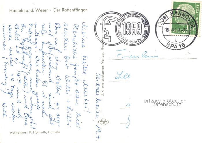 73111870 alte Postkarte Hameln Weser Rattenfaenger postalisch gelaufen Erhaltung siehe scans [NatalD47] KatCode: 11110003252006