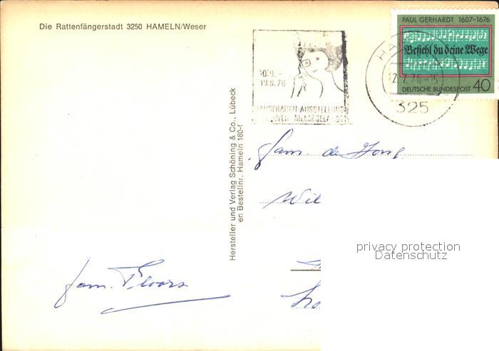 72519379 alte Postkarte Hameln Weser Rattenfaenger Buergerpark Wehr Osterstrasse postalisch gelaufen Erhaltung siehe scans KatCode: 11110003252006