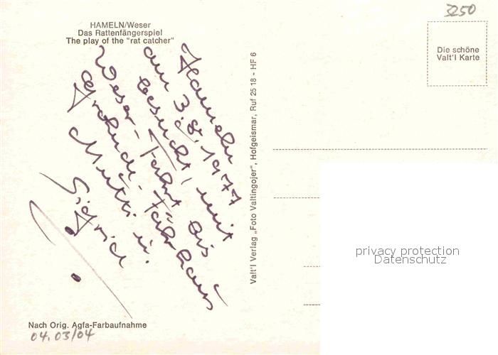 72909932 Hameln Weser Rattenfaengerspiel postalisch nicht gelaufen Erhaltung siehe scans [LiesaD40] KatCode: 11110003252006