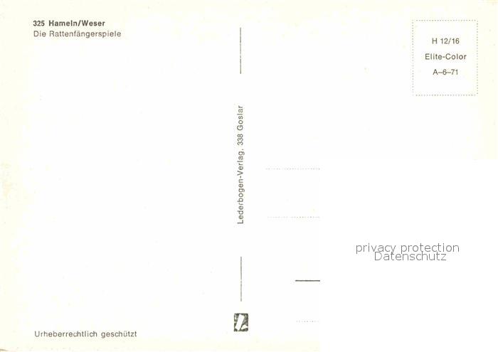 72854610 Hameln Weser Rattenfaengerspiele postalisch nicht gelaufen Erhaltung siehe scans [LiesaD40] KatCode: 11110003252006