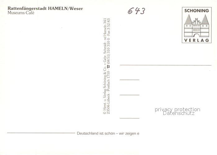 73574343 Hameln Weser Rattenfaengerstadt Museums-Cafe Strassencafe Altstadt postalisch nicht gelaufen Erhaltung siehe scans [FriedD77] KatCode: 11110003252006