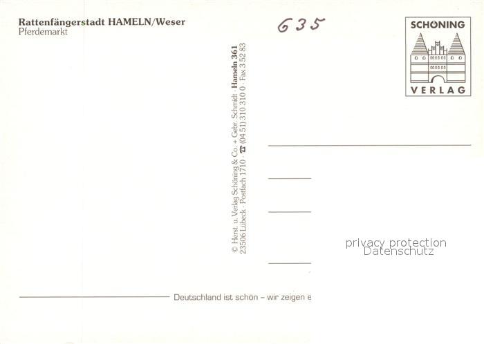 73574345 Hameln Weser Rattenfaengerstadt Pferdemarkt Altstadt Historische Haeuser postalisch nicht gelaufen Erhaltung siehe scans [FriedD77] KatCode: 11110003252006
