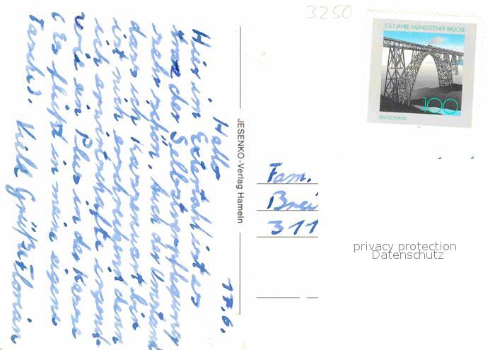 72917883 alte Postkarte Hameln Weser Rattenfaengerstadt postalisch gelaufen Erhaltung siehe scans [WerneD78] KatCode: 11110003252006