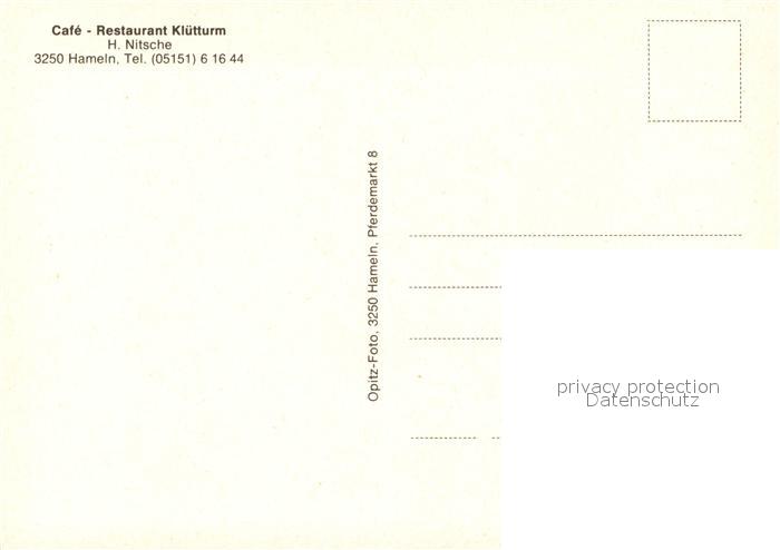 73086783 Hameln Weser Restaurant Cafe Kluetturm postalisch nicht gelaufen Erhaltung siehe scans [KathaD81] KatCode: 11110003252006
