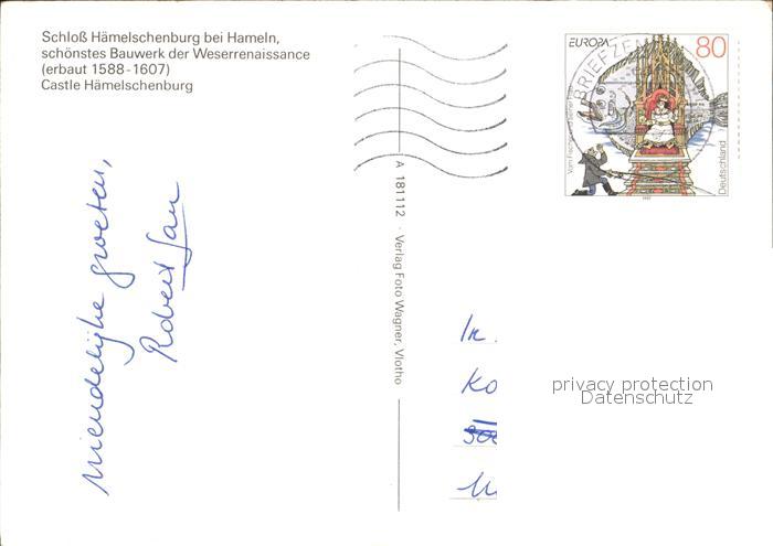 72417223 alte Postkarte Hameln Weser Schloss Haemelschenburg schoenstes Bauwerk der Weserrenaissance postalisch gelaufen Erhaltung siehe scans KatCode: 11110003252006