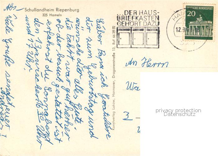 73763317 alte Postkarte Hameln Weser Schullandheim Riepenburg postalisch gelaufen Erhaltung siehe scans [WerneD78] KatCode: 11110003252006