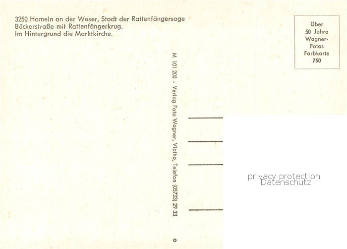 73767866 Hameln Weser Stadt der Rattenfaengersage Baeckerstrasse Rattenfaengerkrug Marktkirche Fussgaengerzone postalisch nicht gelaufen Erhaltung siehe scans [FriedD77] KatCode: 11110003252006