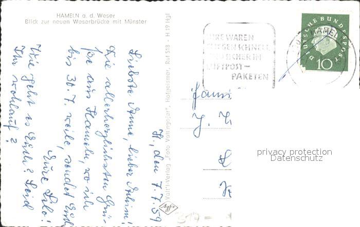 31821462 alte Postkarte Hameln Weser Wasserbruecke mit Muenster postalisch gelaufen Erhaltung siehe scans KatCode: 11110003252006