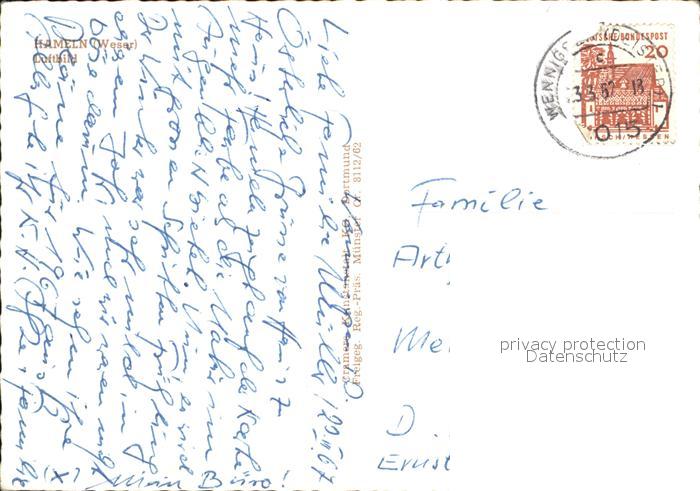 72512683 alte Postkarte Hameln Weser Weser Fliegeraufnahme postalisch gelaufen Erhaltung siehe scans KatCode: 11110003252006