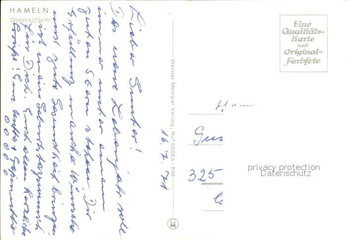 72415499 Hameln Weser Weserschleife Weserlied postalisch nicht gelaufen Erhaltung siehe scans KatCode: 11110003252006