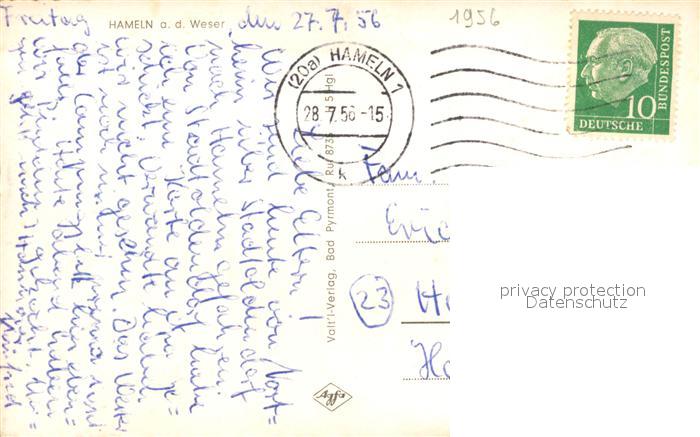 73283089 alte Postkarte Hameln Weser postalisch gelaufen Erhaltung siehe scans [NatalD47] KatCode: 11110003252006