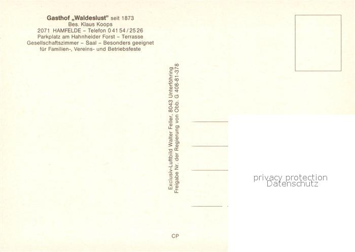 73723947 Hamfelde Holstein Gasthof Waldeslust Fliegeraufnahme postalisch nicht gelaufen Erhaltung siehe scans [WerneD78] KatCode: 11110001062026
