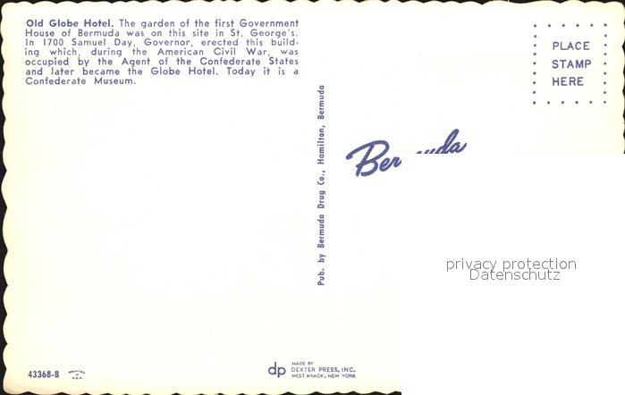 Hamilton Bermuda Old Globe Hotel postalisch nicht gelaufen Erhaltung siehe scans [KathaD79]