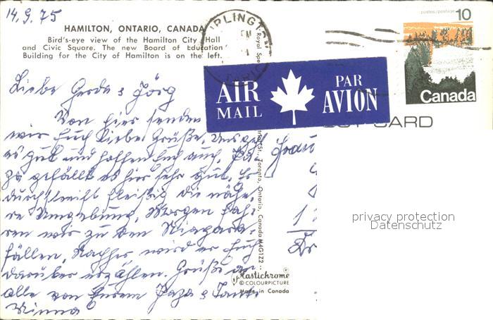 old postcard Hamilton Ontario Birdseye view of City Hall and Civic Square postalisch gelaufen Erhaltung siehe scans