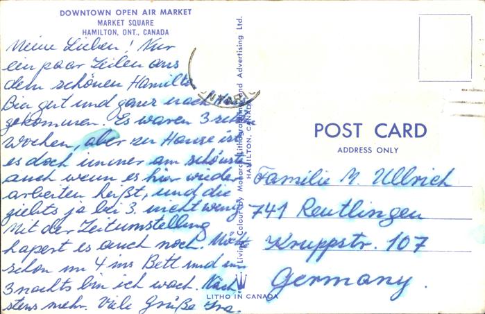 old postcard Hamilton Ontario Downtown Market Square postalisch gelaufen Erhaltung siehe scans