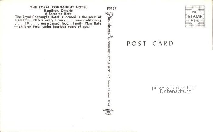 Hamilton Ontario Royal Connaught Hotel postalisch nicht gelaufen Erhaltung siehe scans