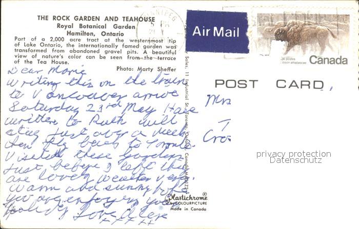 old postcard Hamilton Ontario the Rock Garden and Teahouse postalisch gelaufen Erhaltung siehe scans