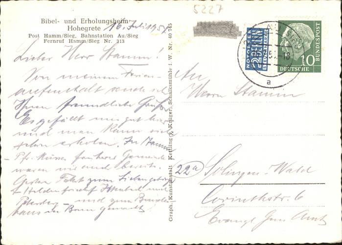 41306187 Hamm Sieg Bibel und Erholungsheim Hohegrete in Au an der Sieg Details KatCode 11110007132044