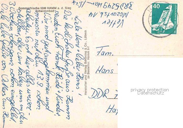72823960 alte Postkarte Hamm Sieg Schwimmbad Restaurant Terrasse postalisch gelaufen Erhaltung siehe scans [FriedD77] KatCode: 11110007132044