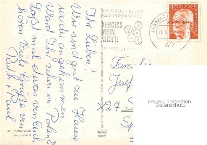 72687993 alte Postkarte Hamm Westfalen Hauptbahnhof postalisch gelaufen Erhaltung siehe scans [FriedD77] KatCode: 11110005915000