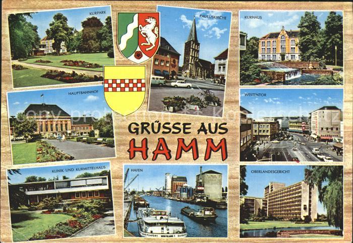 72370958 alte Postkarte Hamm Westfalen Hauptbahnhof Kurhaus Hafen Gericht postalisch gelaufen Erhaltung siehe scans KatCode: 11110005915000